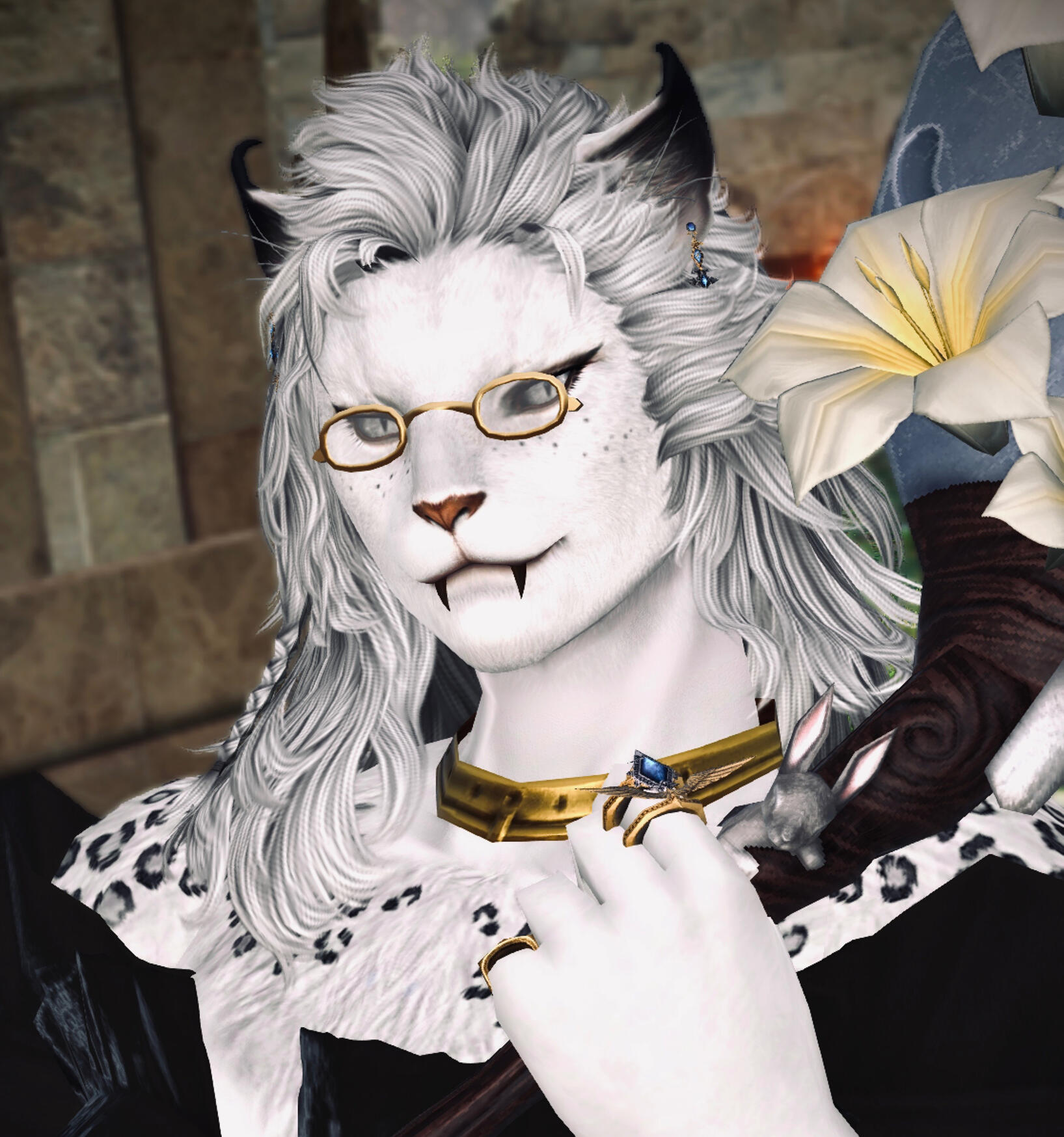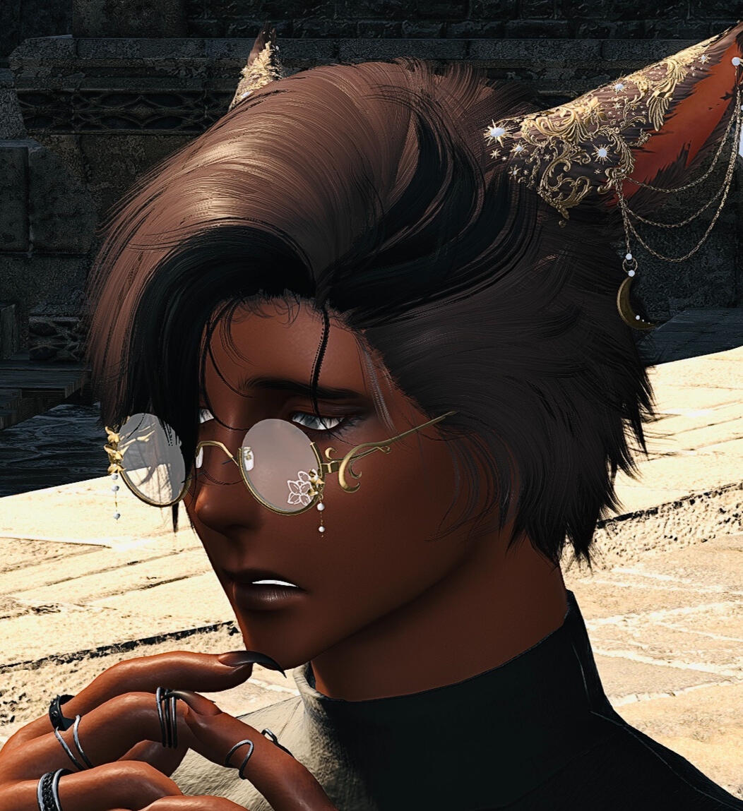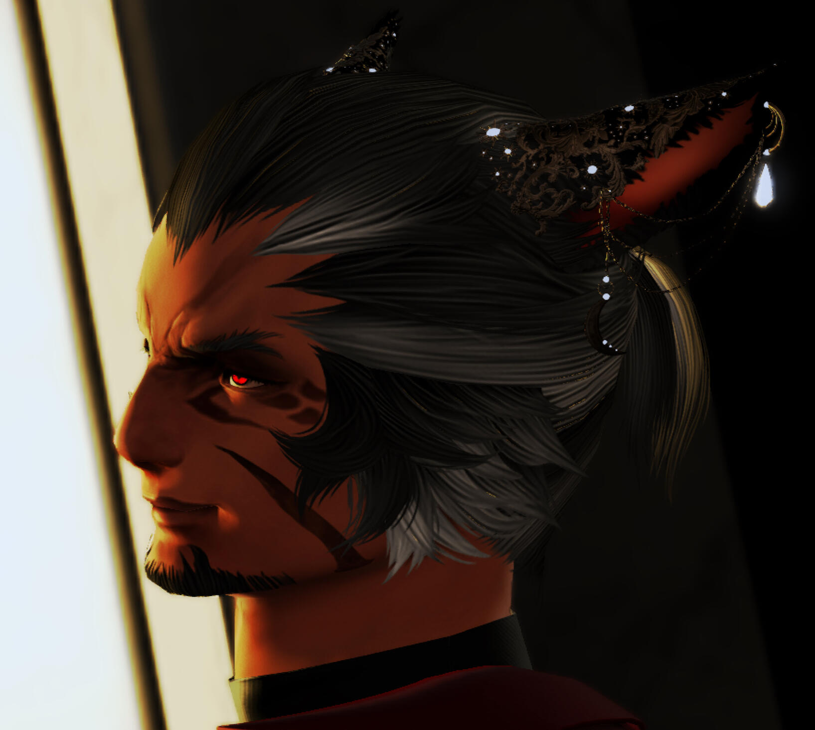 At first glance, E'zio is a rather short miqote with a face that could make a child cry and a cute bobtail that doesn't seem to match this angry looking man. Despite him being a short grumpy old guy, he is quite sweet and loves his husband dearly. A retired gleaner from Sharlayan who married a ditzy and soft scholar from the Studium, they live together in Sharlay and enjoy their days together in their old age, E'zio cooking and cleaning as a house husband and his beloved a professor in the Studium.