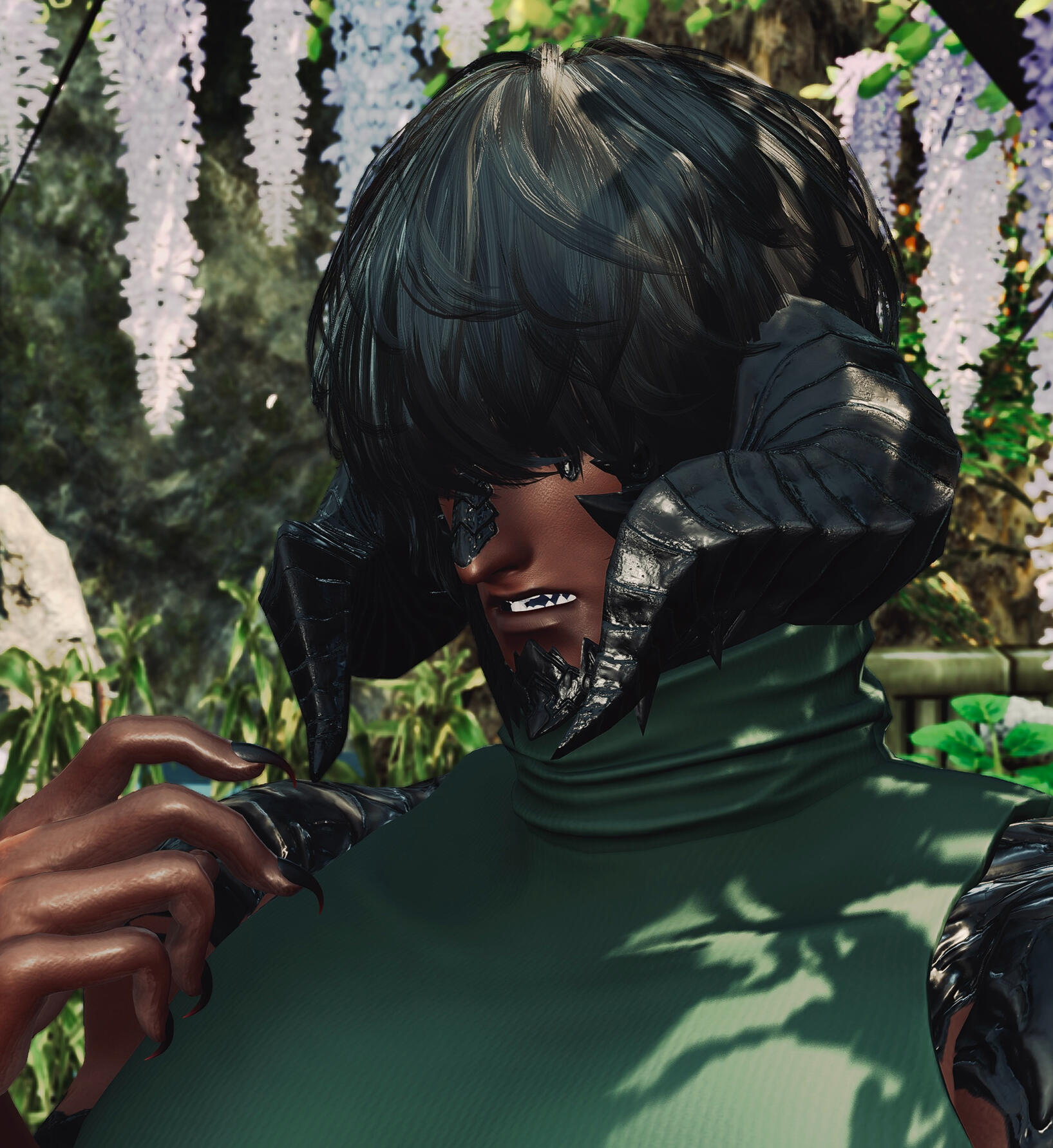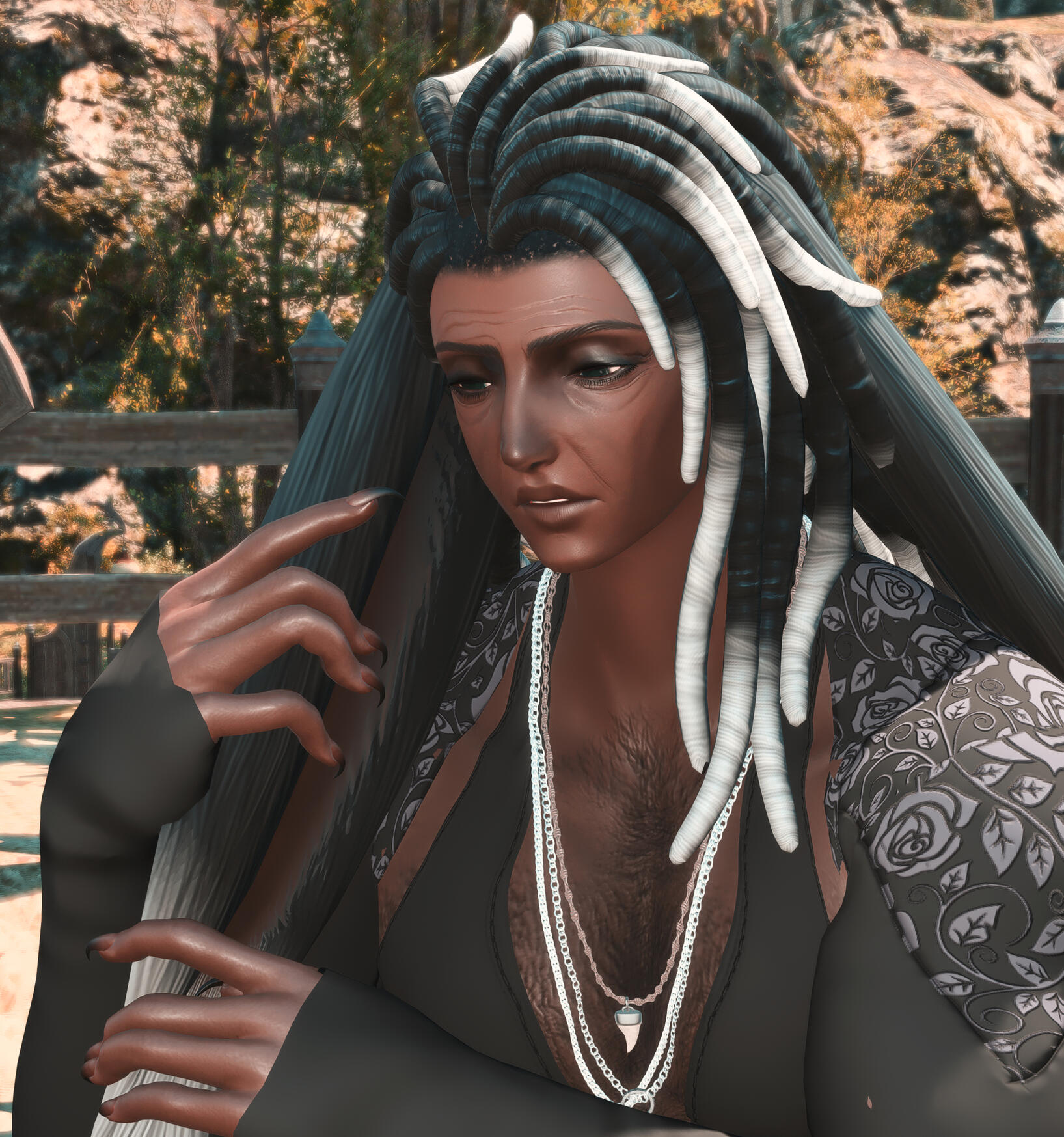 Can he even see out of those long bangs? Wouldn't you like to find out hm? A man ever so quiet and always observant. He has a strange air about him, black lizard-like talons, a plated tail and the scent of medicinal herbs surround him. Why won't he get a haircut? Why not just ask him hm? You might learn more than expected about this strange fellow.