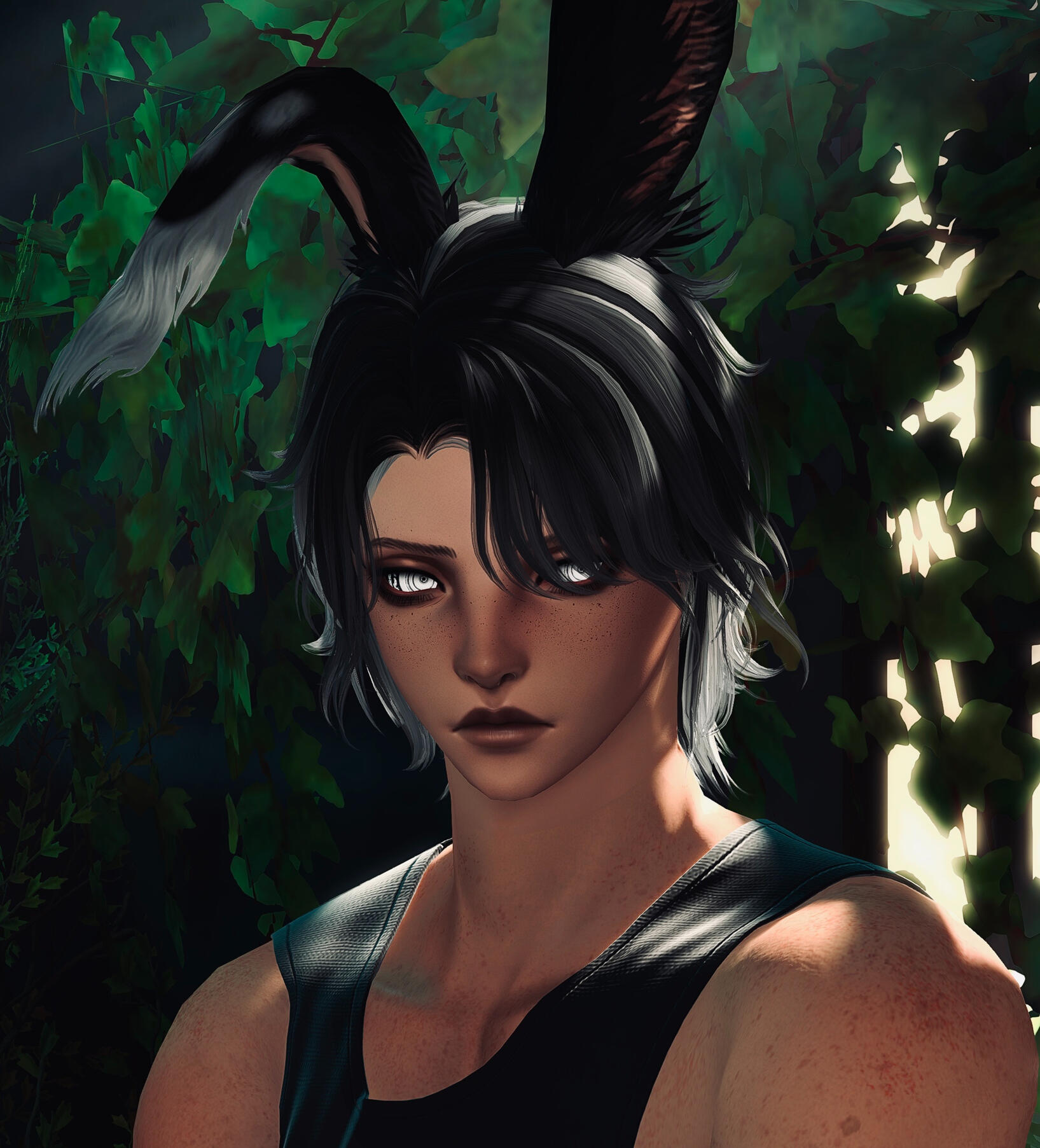 Kisne is a quiet half lopped eared bun from Dalmasca who usually keeps to himself. Arms made of olden metal and parts unknown to most magitek or mechanics and always wearing a mask, good luck to those who wish to try and crack him open...but play your cards right and you just might get lucky enough to see what lies beyond the mask.